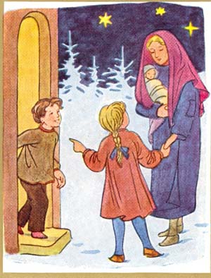 "Jetzt hängen sie auch zu Hause den Kranz auf, und morgen abend feiern sie dabei", sagte Hans, und es klang recht sehnsüchtig. Lore fragte vorsiditig: "Hast du manchmal Heimweh?" Die Antwort blieb aus. So was konnte man vor einem Mädel nicht zugeben. Aber Lore erriet wohl die Wahrheit. Sie sagte eifrig: Du, wir feiern aber auch. Ich krieg sicher ein bißchen Pfefferkuchen, und dann singen wir." - Hans nickte erfreut.